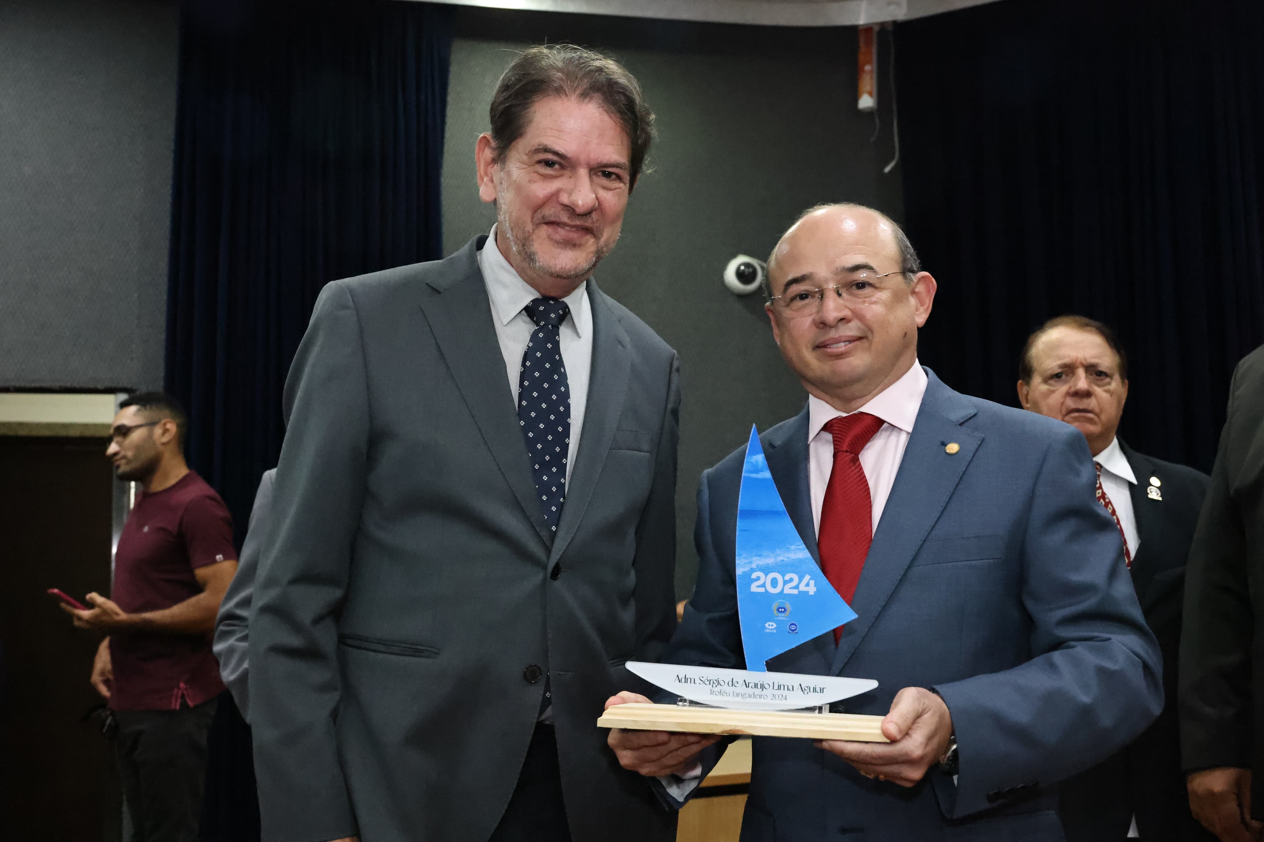 Nesta segunda-feira (4/11), o deputado estadual e administrador Sérgio Aguiar recebeu o Troféu Jangadeiro 2024 durante cerimônia no Auditório Murilo Aguiar da Assembléia Legislativa do Ceará. A comenda é a mais elevada láurea dos administradores, e é um reconhecimento das três entidades representativas da profissão: Conselho Regional de Administração do Ceará (CRA-CE), Academia Cearense de Administração (Acad) e Associação dos Administradores do Estado do Ceara (Aadece).